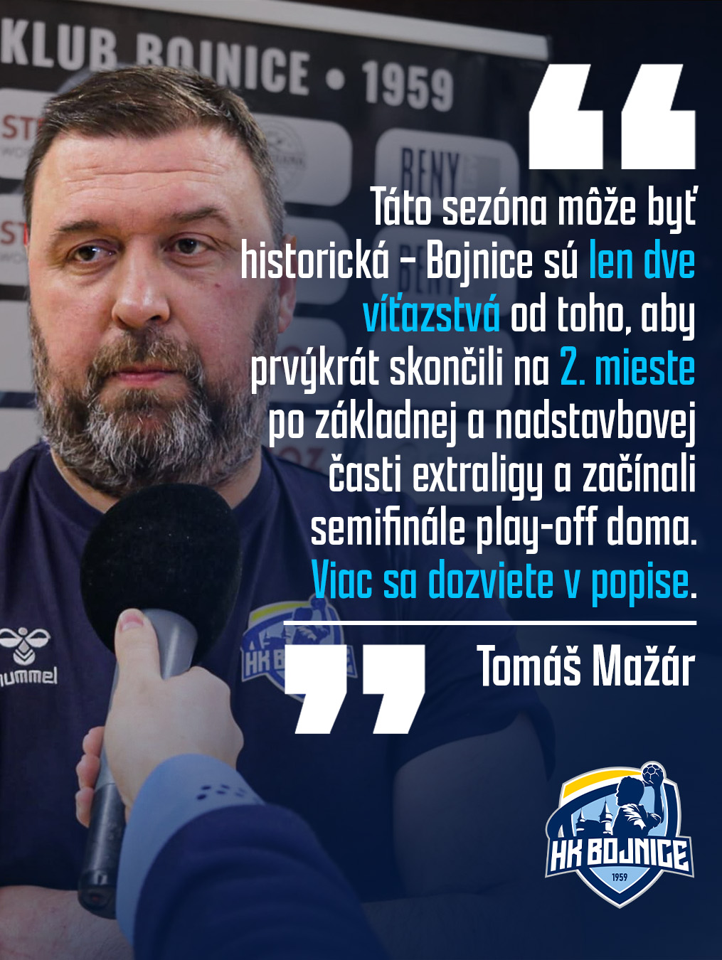 Ako tréner HK Bojnice musím povedať, že tento klub je jedna veľká hádzanárska rodina. Od vedenia, cez trénerov a vedúcich mužstiev, až po ľudí pri stolíku či tých, ktorí po zápase utierajú palubovku – každý má v tom svoj diel a bez nich by to nefungovalo.